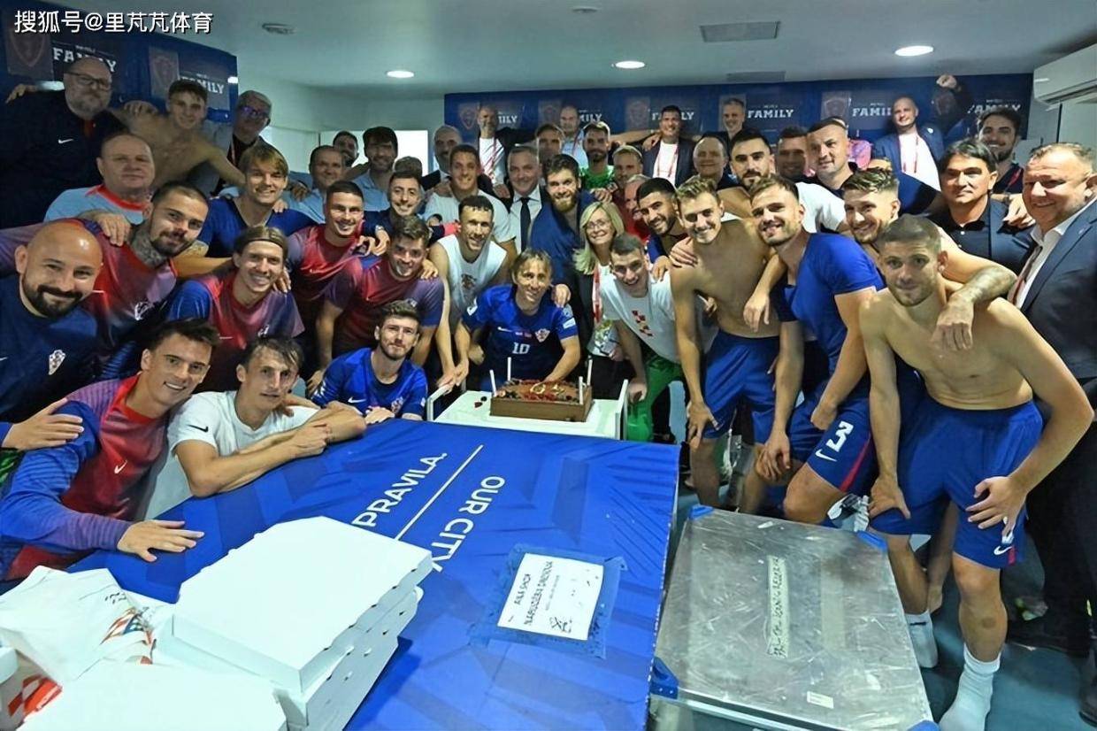 莫德里奇迎来40岁生日,克罗地亚全队赛后在更衣室为这位传奇队长庆生。